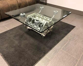 This chevy engine block coffee table is just what your man cave, living room, or garage needs to set itself apart. This video shows how i created a glass top coffee table using an engine block, rods and pistons from a 1959 cadillac 390 cubic inch big block v8. 2 sizes offered coffee table 24 square first generation small block chevy v8 engine table with pistons mounted in the center of the block.