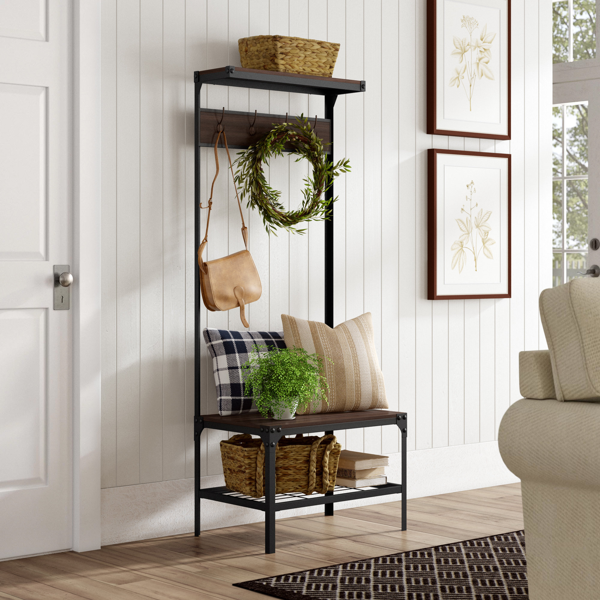 Find entryway benches with storage for shoes & more.