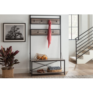 Enjoy free shipping on most stuff, even big stuff. Bedford entryway hall tree this entryway hall tree in white finish is crafted from manufactured wood with poplar wood solids, strengthened by metal hardware. Coat rack with 9 hooks.